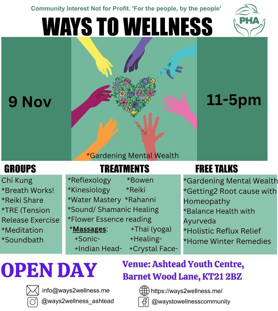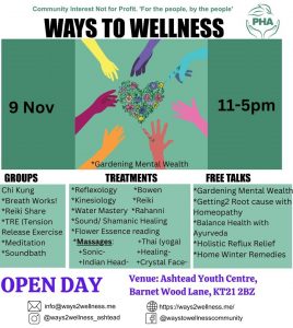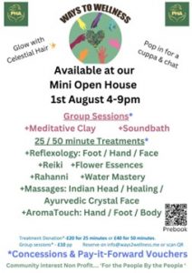 Ways to Wellness Open Day… exceeded our hopes and expectations. Thank you for those joining us in different ways to take care of our wellbeing. All our 121 treatments were booked and there was excellent uptake in the talks and group sessions. So much curiosity piqued and awareness raised. The final session sound bath almost lifted the roof. We are immensely humbled and simultaneously grateful. All this was made possible by massive amounts of teamwork and trust! We truly believe this to be the way forward… community rising to meet community needs. Thank you everyone.