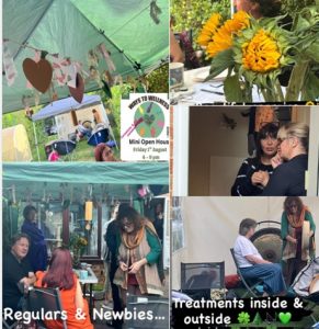 Almost like Mini open day sans “talks”. Brilliant event! Huge thank you to everyone involved – Ros & Nick (opening your beautiful hearts & house), volunteers, practitioners and supporters old & new. We made magic. Concessions and PIF vouchers put to good use! A massive attendance at Lin’s wonderfully relaxing sound bath, not even a few drops of rain deterred anyone. Thank you thank you thank you.