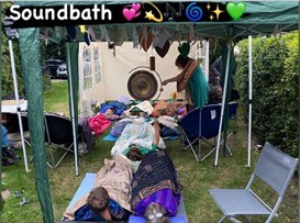James from Rainbow Garden nurseries talking on the mental health benefits of Gardening, Excellent Raffle prizes, Monica doing Thai massage, Sally-Anne during Reflexology, Reiki share, delicious home baked refreshments by the Draper sisters Rochena & Pascalle and The Energy Wheel fantastic soundbath