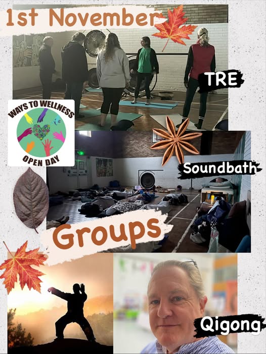Lovely seeing TRE (Tension /Trauma Release Exercise) picking up by more people -newbies and regulars alike! Qigong still gaining exposure and Soundbath as popular as ever, even with our volunteers and practitioners. The group field enhances your work so even more beneficial than just doing these activities alone.